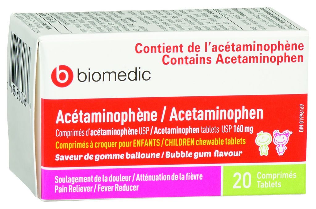 Biomedic Children's Acetaminophen Tablets for children ages 2-11years old will reduce fever and temporarily relieve pain.