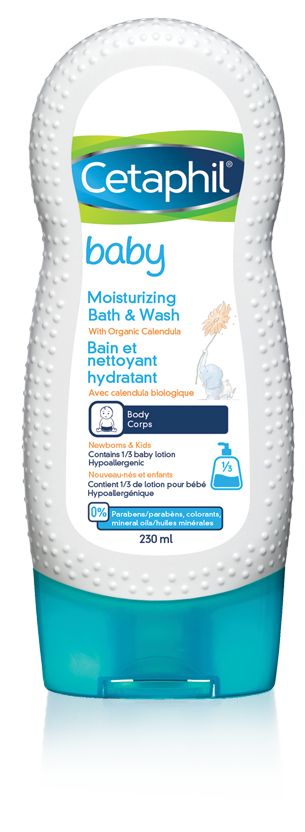 Nourish and protect delicate skin at bath time with Cetaphil Baby Moisturizing Bath & Wash. This rich lathering wash contains 1/3 of our baby lotion to help hydrate the skin while washing. The non-slip bottle keeps bath time fun and easy.