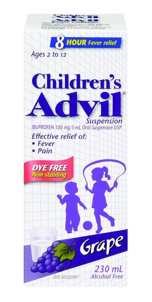 Children’s Advil relieves fevers for up to 8 hours, so your kid can get back to being a kid. And it comes in great-tasting flavours, so your child would be willing to take it. Ages 2–12 years.