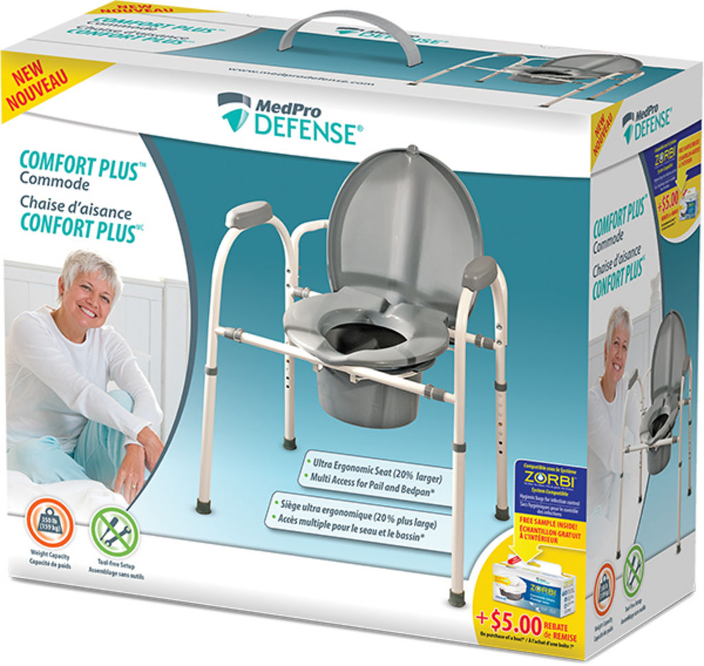 The Comfort Plus Commode was designed as part of the Zorbi bag system this makes clean up, hygiene easy. Using the Zorbi bags with the commode also helps control odor reduce the spread of germs