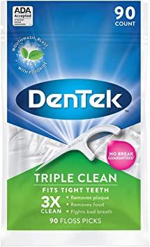 DenTek® Advanced Clean Floss Picks are no shred, no break floss*. They are composed of 200+ individual scrubbing strands of floss so it scrubs with extra nooks and ridges. Our thinnest, strongest floss gets into even the tighest spaces and works on tight teeth. Includes a micro-textured pick to scrape away stubborn bits. It also includes a tongue scraper to help remove the bacteria that causes bad breath and a micro-textured pick for a more thorough clean. In addition to a great clean, you're getting an advanced pick that includes: a floss no-break guarantee*, mouthwash blast flavored floss and flouride infused floss strands.