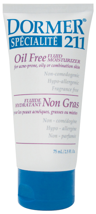 DORMER 211 OIL FREE FLUID MOISTURIZER… specially formulated for daily use on acne-prone, oily or combination skin. An oil-free and fragrance-free balanced moisturizer that is rapidly absorbed for a matte finish. Excellent base for makeup. Tones, softens and promotes skin elasticity. Dermatologist recommended
