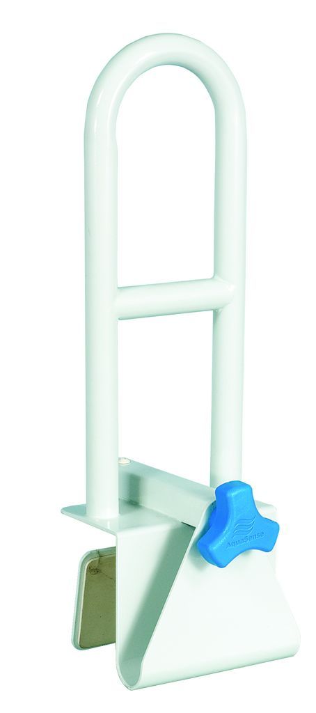 The AquaSense® Multi-adjust bath safety rail allows for both parallel and perpendicular orientation to the bathtub wall, and features four (4) different height settings. It provides a feeling of security, stability and comfort when entering or exiting the bathtub.