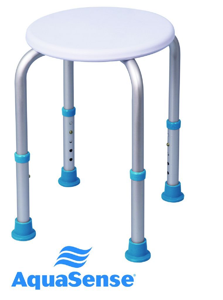 This Shower stool, by AquaSense®, is ideal for shower enclosures and narrow bathtubs, this height adjustable shower stool is made from lightweight aluminum tubing and blow-molded plastic. It features a textured surface and 4 slip resistant rubber safety tips.