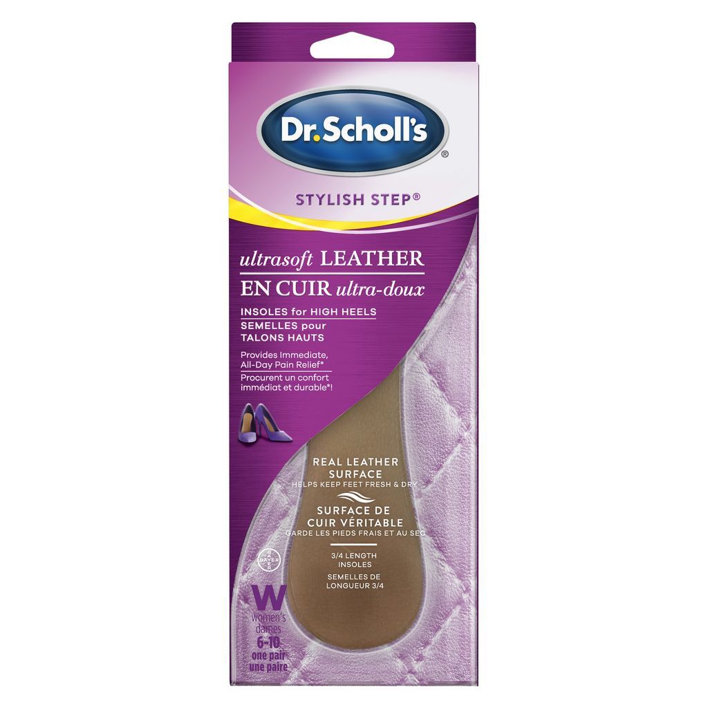 Dr. Scholl’s Stylish Step Ultrasoft Leather Insoles for Flats provide immediate, all-day comfort in stylish dress shoes. These insoles are made with a real leather topcloth for a premium look and feel. The leather surface also helps keep feet fresh and dry. Made in 3/4 length so these insoles fit comfortably in women's shoes.