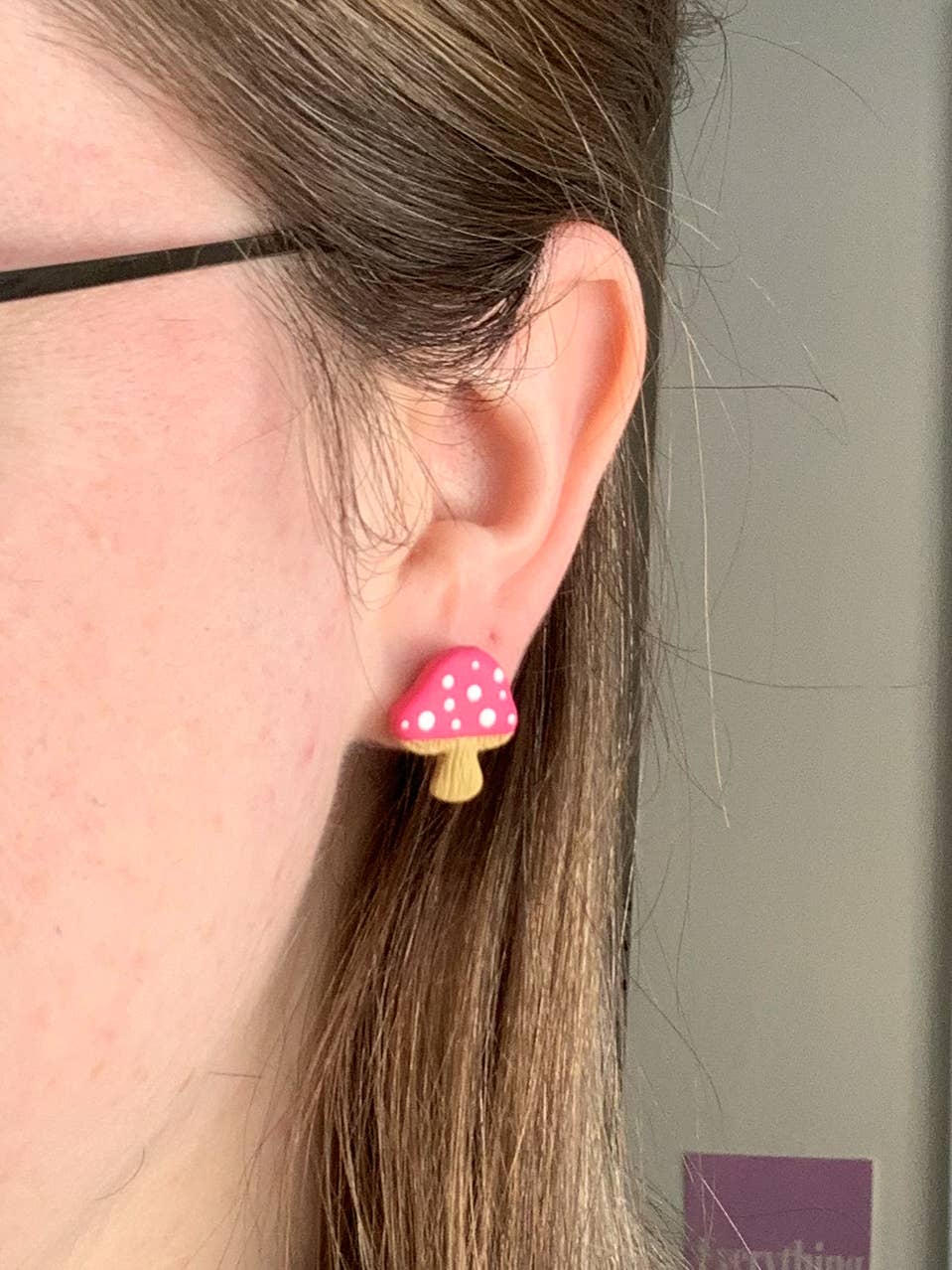 This Frog & Mushroom stud pack was inspired by some of the first pairs of clay earrings I ever made. I loved the idea of a cute little frog and attempted this style. Back then, the earring ended up lumpy, but still cute!