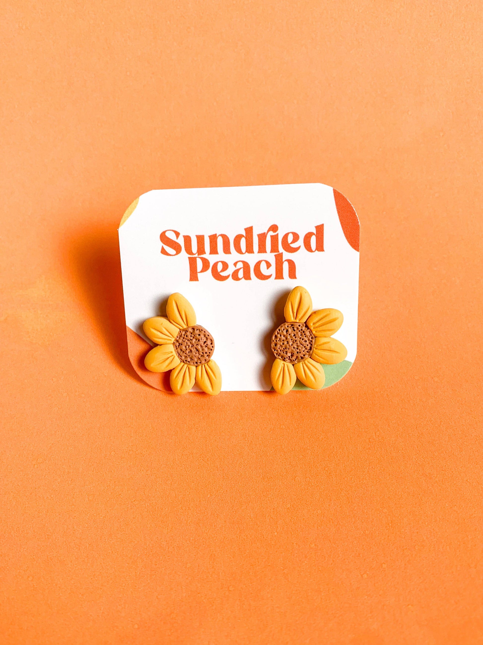 Introducing our charming little sunflower studs, carefully handcrafted to add a touch of sunshine to your everyday look. Each pair is lovingly made with attention to detail, ensuring that every sunflower petal is perfectly formed.