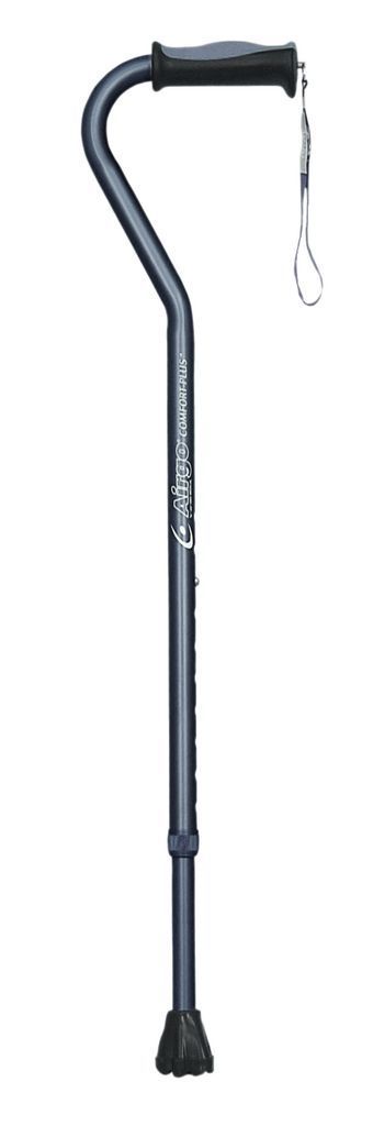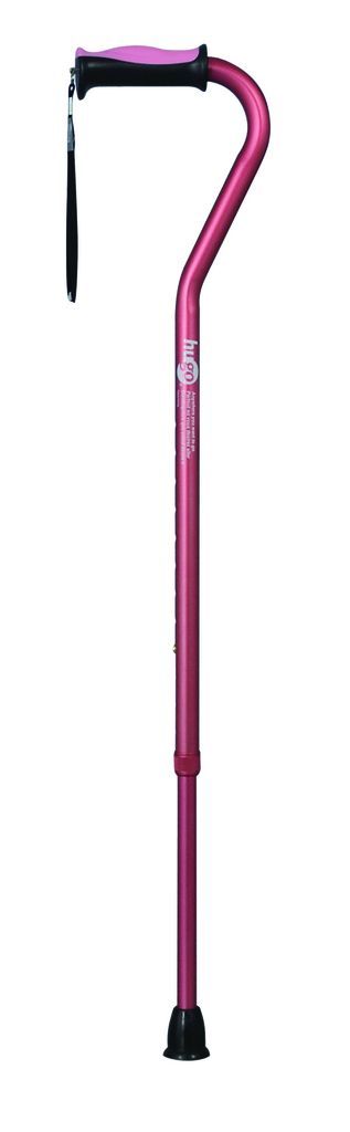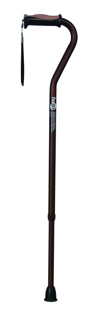 Hugo Offset comfortable grip cane is a strong and lightweight aluminum cane that features an ultra-stabilizing cane tip and 12 push-button height settings. Assorted colors and patterns available.