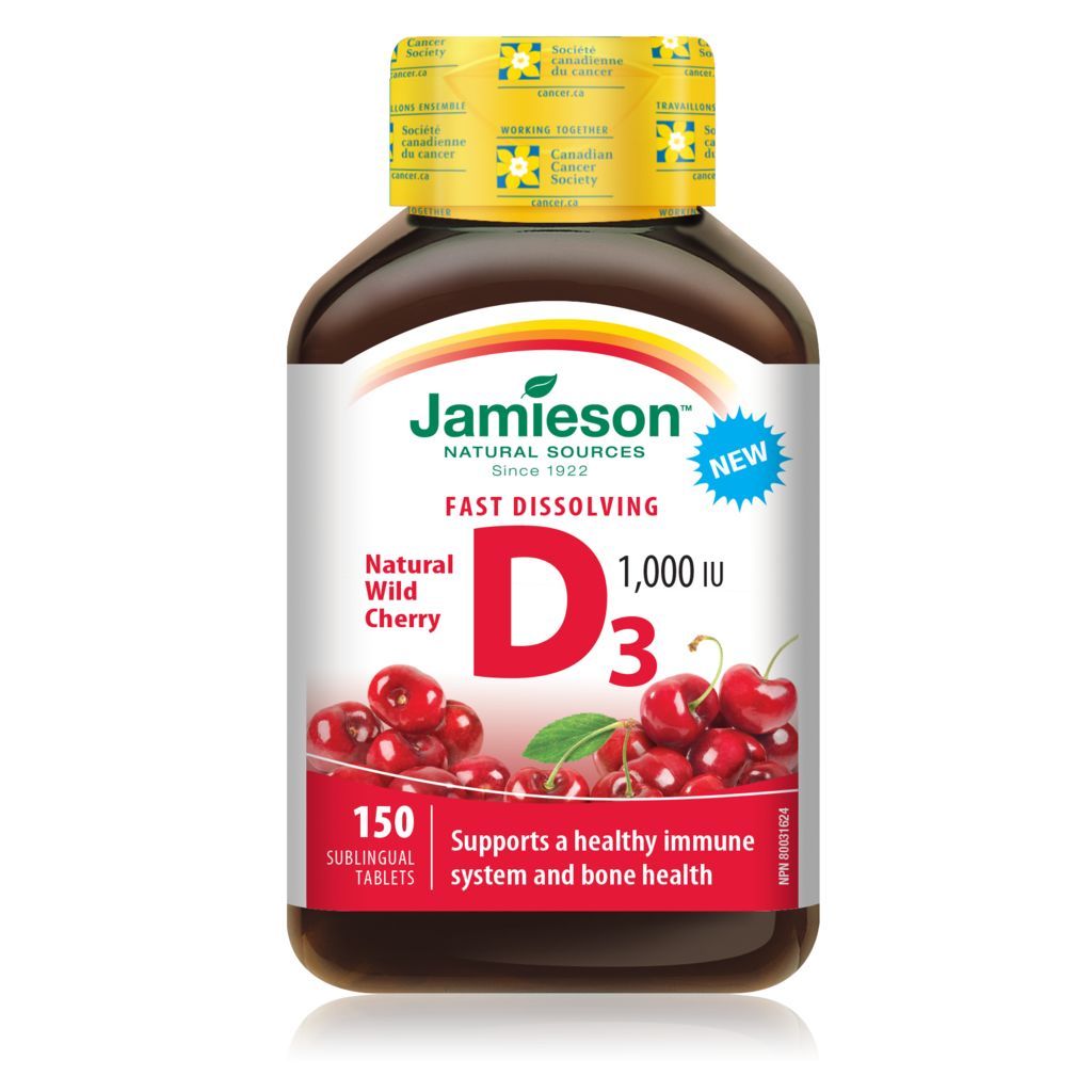 Jamieson Vitamin D3 1,000 IU Sublingual Tablets play a key role in the maintenance of good health while promoting the development of bones and teeth and helping the body effectively absorb calcium. These tablets are quickly absorbed by the body due to the unique fast-melt format.
