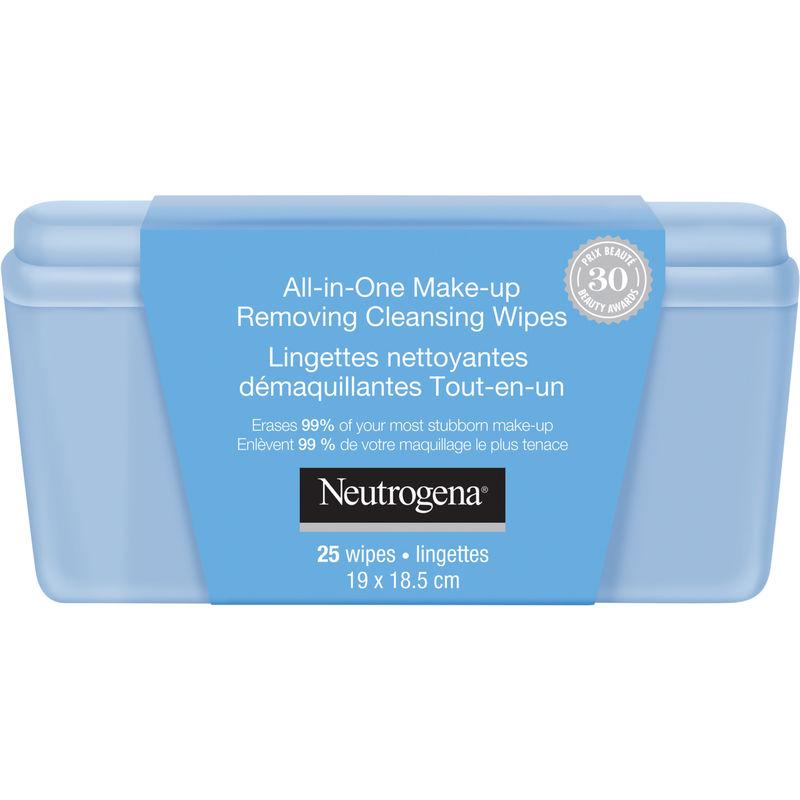 NEUTROGENA® All-in-One Make-Up Removing Cleansing Wipes are soft, pre-moistened wipes, infused with a mild cleansing lotion. They not only gently and effectively cleanse and remove all types of make-up but also tone skin, leaving it refreshed in just one convenient step. Skin conditioning ingredients help prevent over-drying and leave your skin feeling soft and looking healthy. Gentle enough to use around sensitive eye area, even for contact lens wearers.