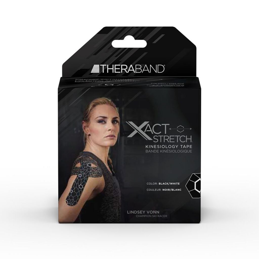 - TheraBand XactStretch visual application guides allow experts and beginners to provide easy and accurate application through the 25% and 50% stretch indicators, eliminating waste and hassle from improper application