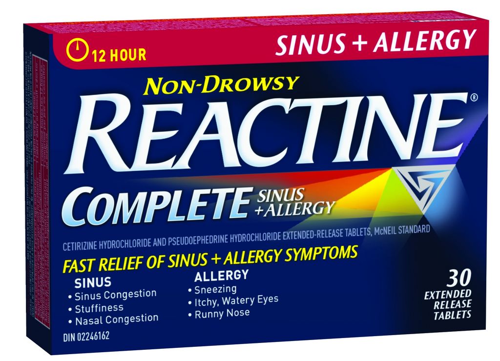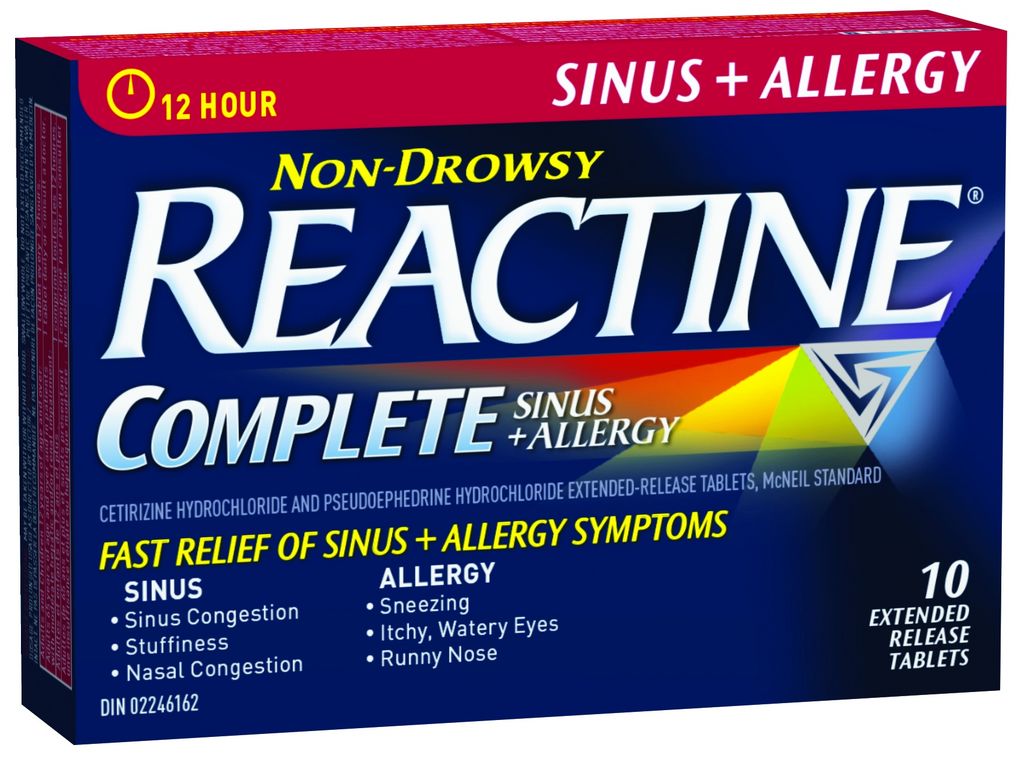 REACTINE COMPLETE SINUS + ALLERGY EXTENDED RELEASE provides fast allergy relief plus a decongestant for when allergies are made worse by sinus symptoms.