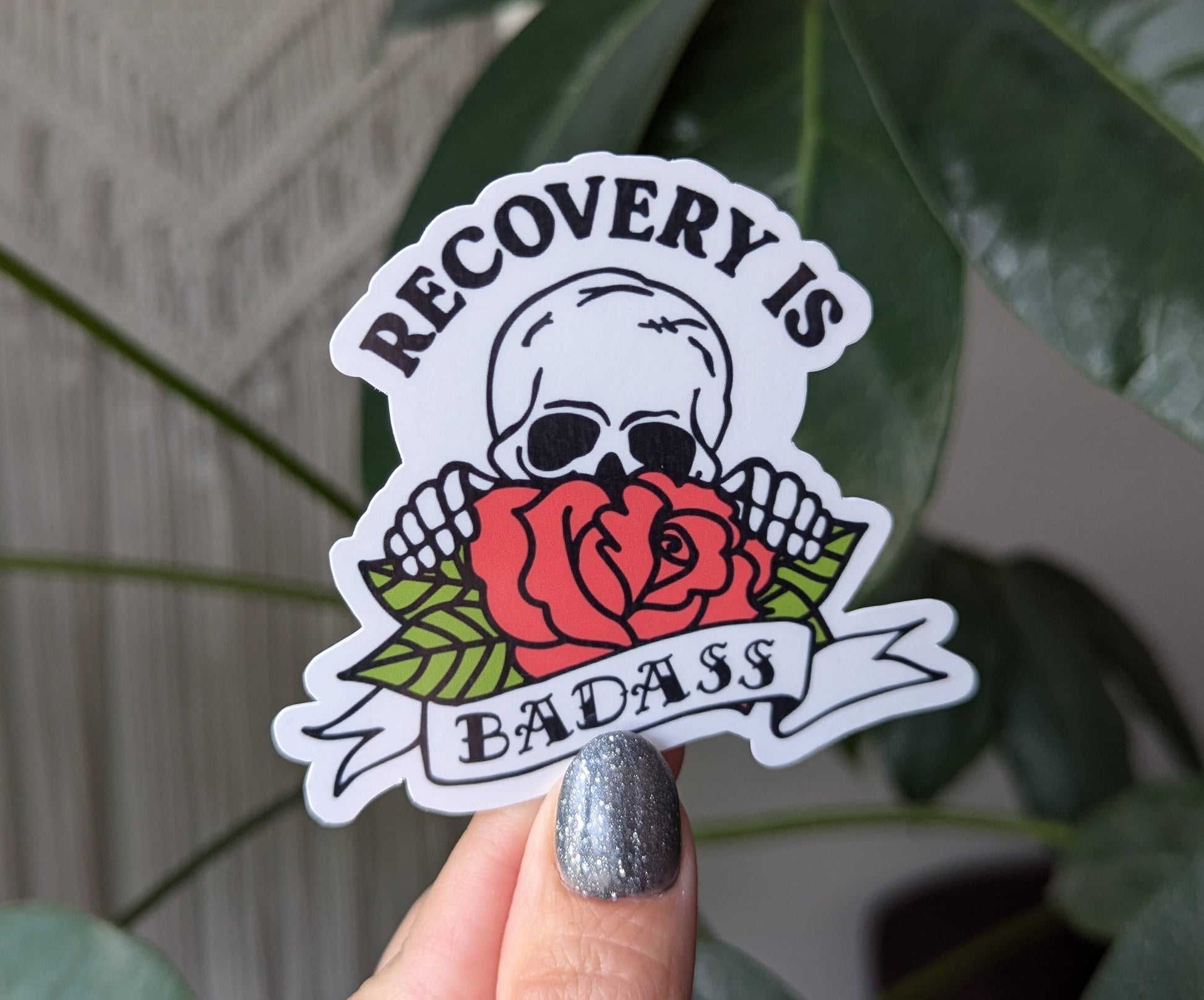 Recovery is badass, sobriety sticker, alcohol drug awareness