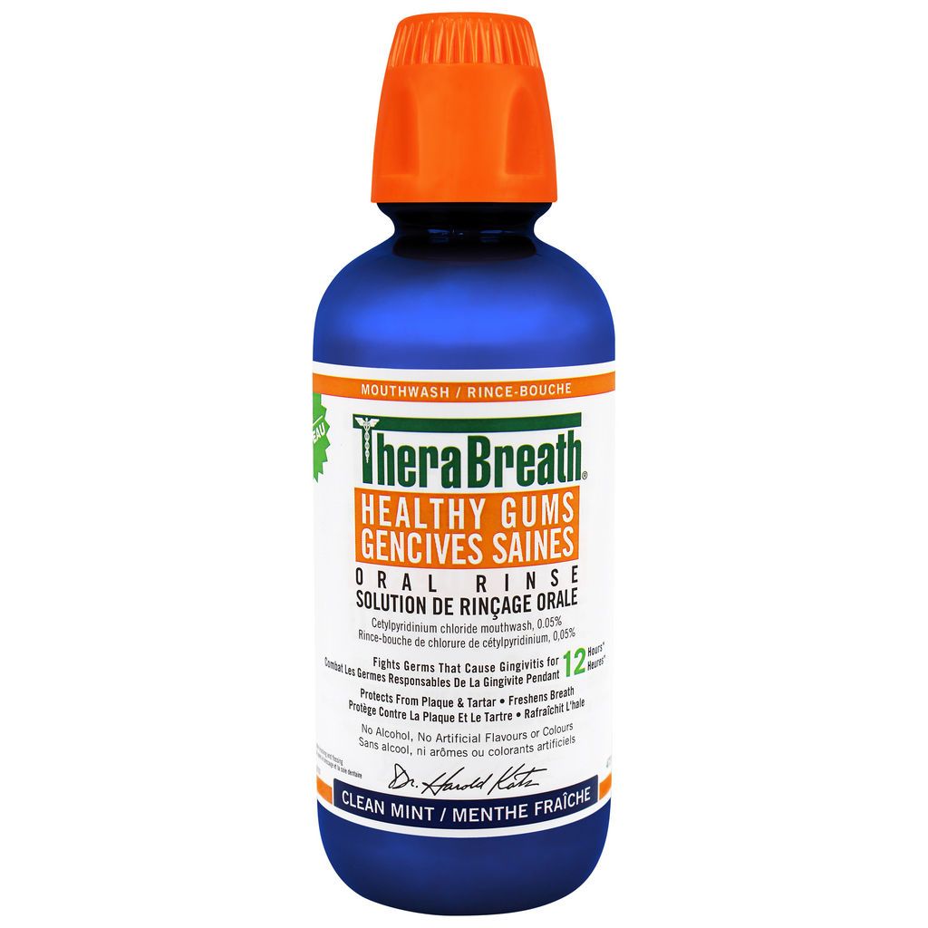 Like all our other oral rinses, TheraBreath Healthy Gums Oral Rinse is dentist-formulated with powerful breath freshening ingredients. The alcohol-free formula doesn’t burn or irritate, and the refreshing Clean Mint Flavour is gentle on sensitive mouths.