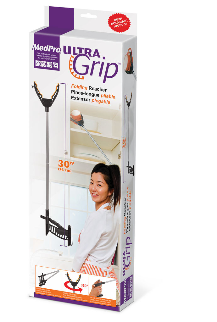 - Adds 30" (76 cm) to your reach! No more straining to grasp objects from high shelves or bending when picking-up small objects. This folding reacher is great for users with limited mobility, flexibility and hand strength.