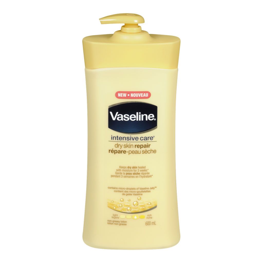 - Vaseline® Intensive Care™ Body Lotion moisturizes dry skin