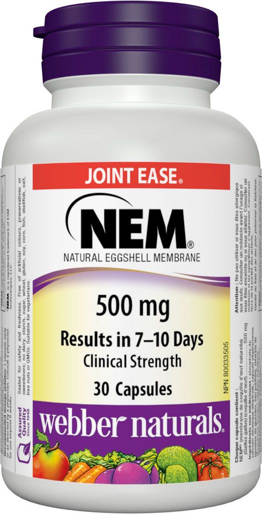 NEM Natural Eggshell Membrane reduces joint pain and improves mobility in just 7–10 days. NEM is clinically proven to be the fastest, most effective nutritional formula for relieving osteoarthritis and other joint conditions. Clinical Strength NEM from Webber Naturals provides a full-strength dose of the same NEM formula proven in clinical trials.