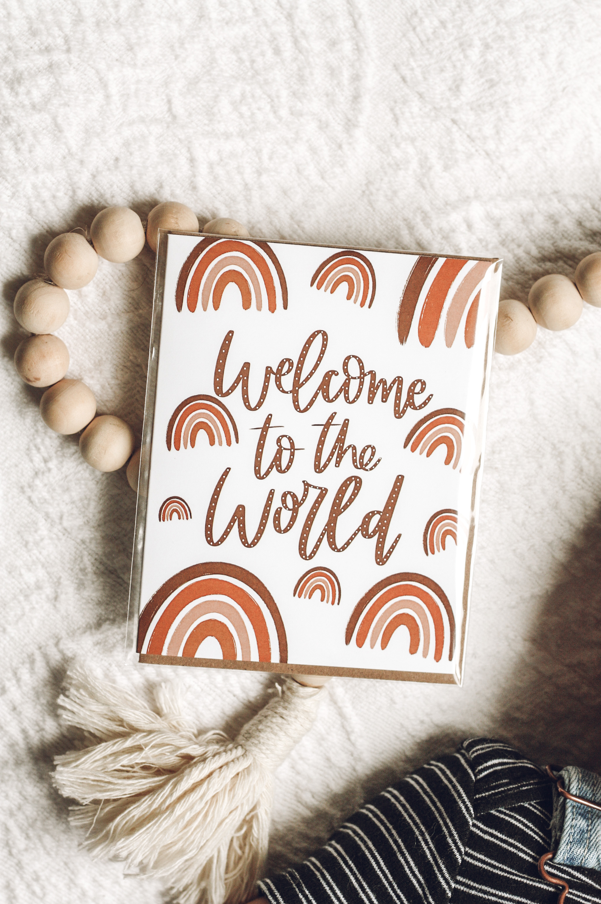 Hand drawn "Welcome to the World" Boho Rainbow Card